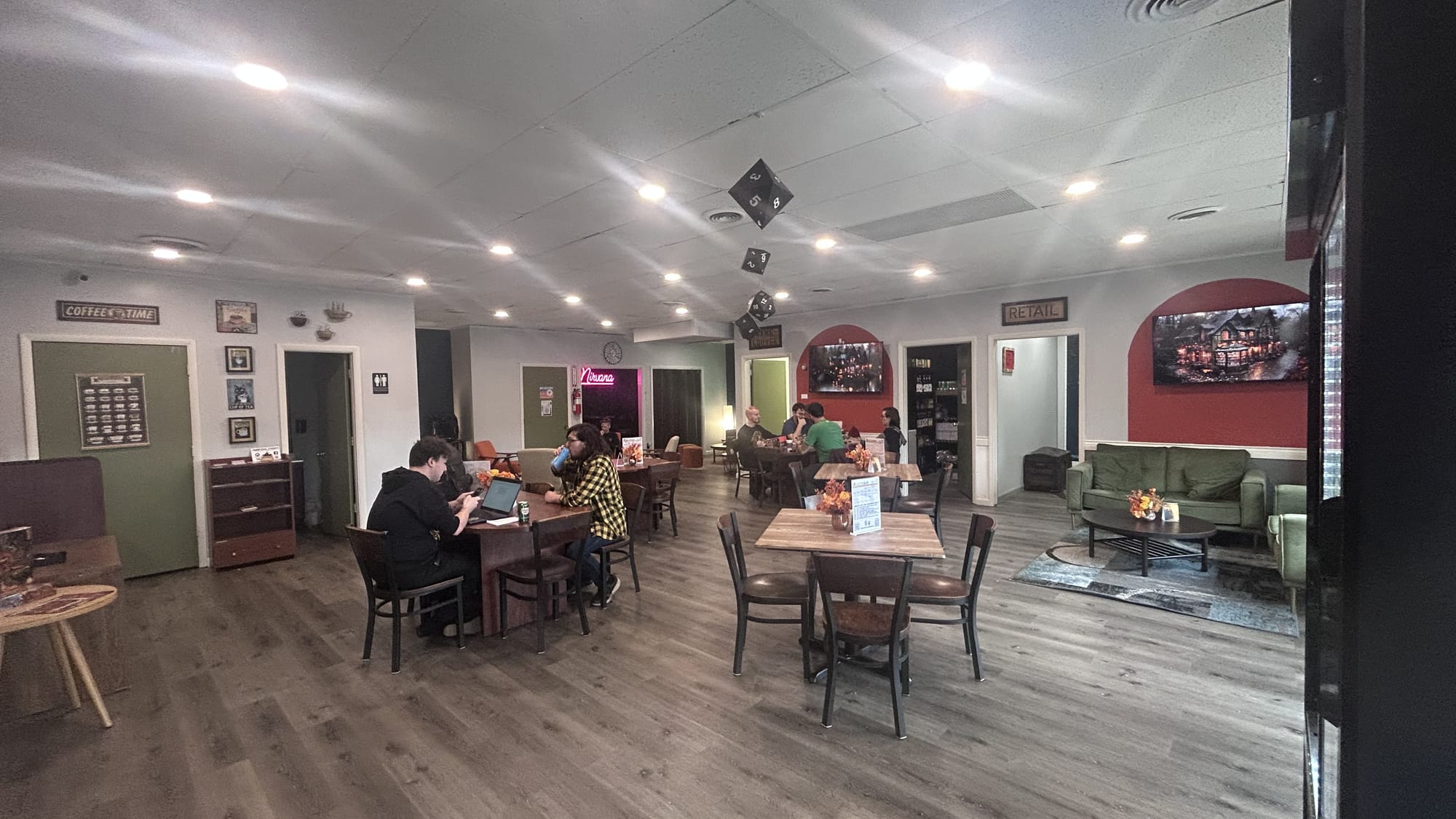 Relax, co-work, snack, find new friends, or borrow a board game. 📸 Charmed Geek