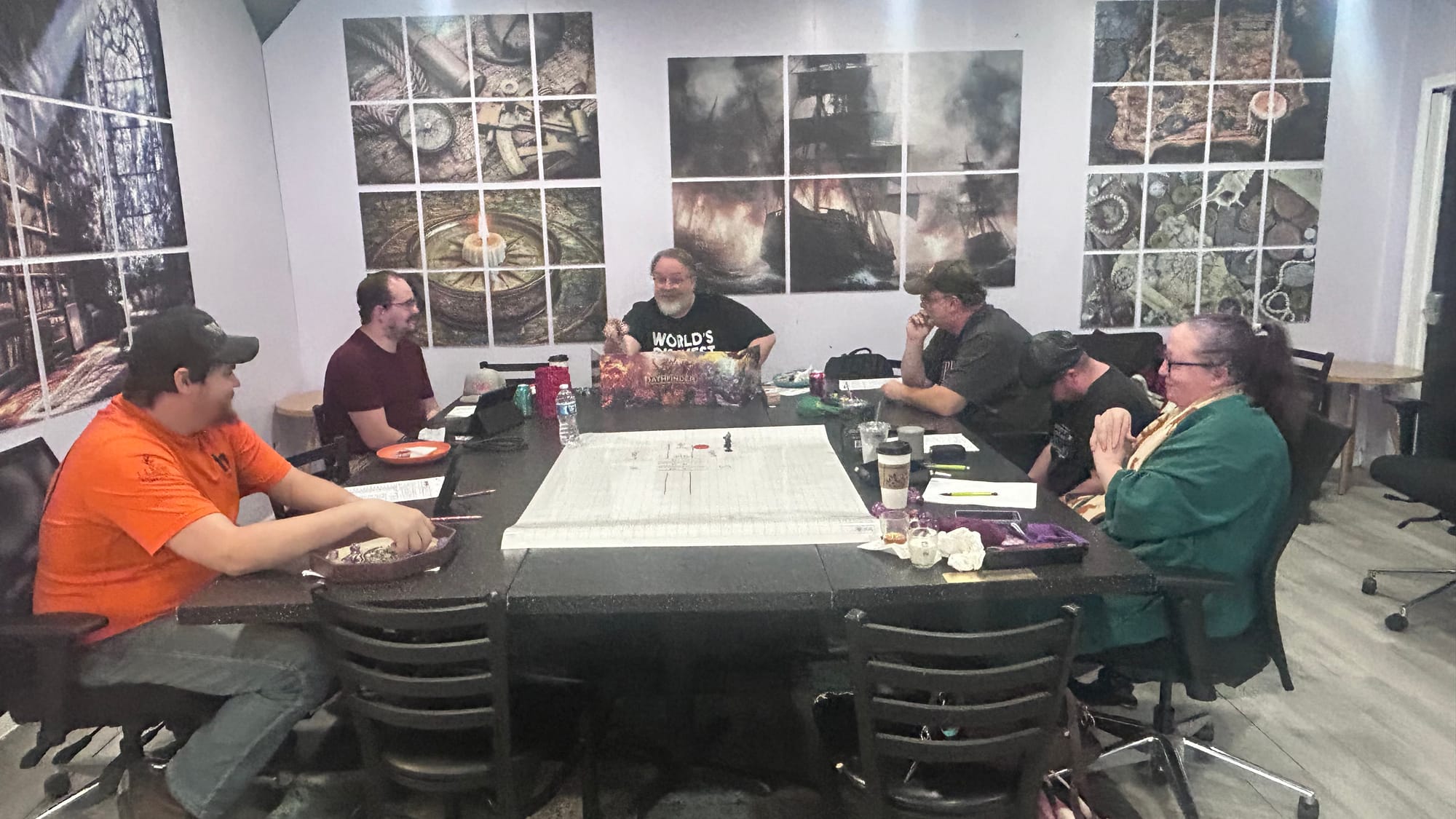 During my visit, I chatted with mature fans watching a Chiefs game, witnessed college-aged kids painting mini figurines, and enjoyed peeking into a wargame in progress. All were happy to welcome me in.
